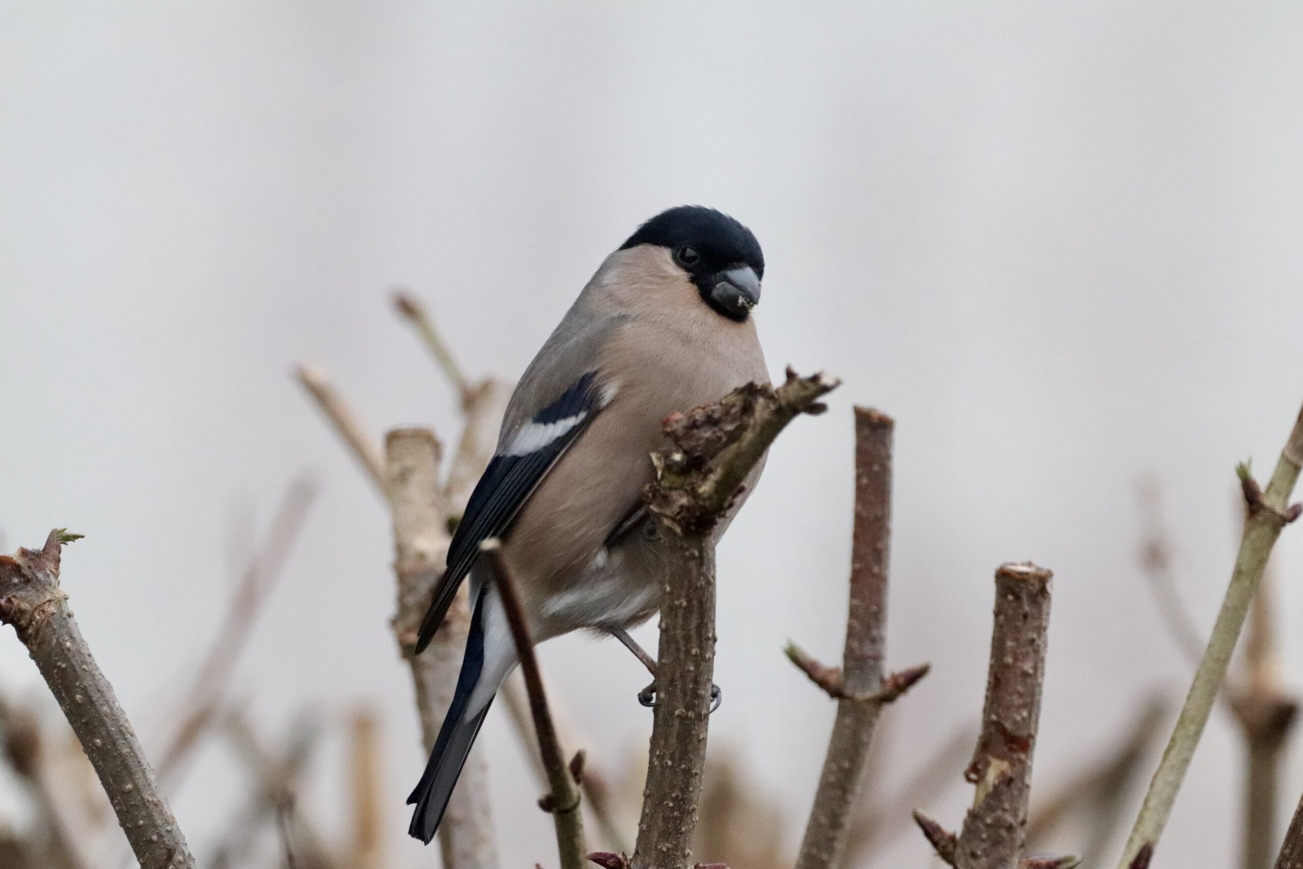 Dompap han hjemme i haven
